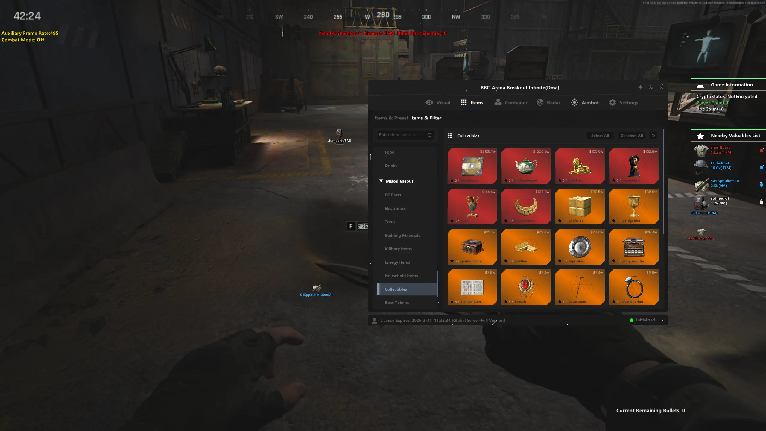 BBC DMA - один из топовых провайдеров приватных читов для различных игр. Данный чит на Arena Breakout, зарекомендовал себя с лучшей стороны, регулярные обновления, хороший функционал, много положительных отзывов и все это по доступной цене!