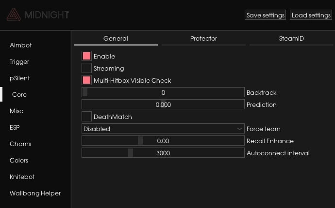 - предоставляются различные виды настроек (легит, полурейдж, триггер, кнайфбот), с которыми вашу игру невозможно