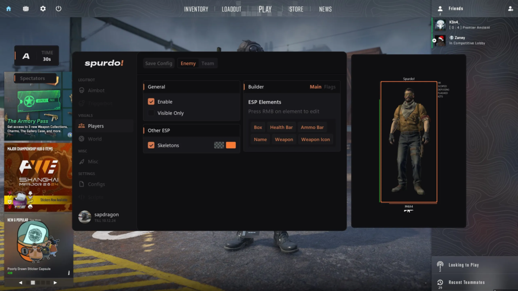 Spurdo - один из топовых провайдеров приватных читов для различных игр. Данный чит на CS2, зарекомендовал себя с лучшей стороны, регулярные обновления, хороший функционал, много положительных отзывов и все это по доступной цене!