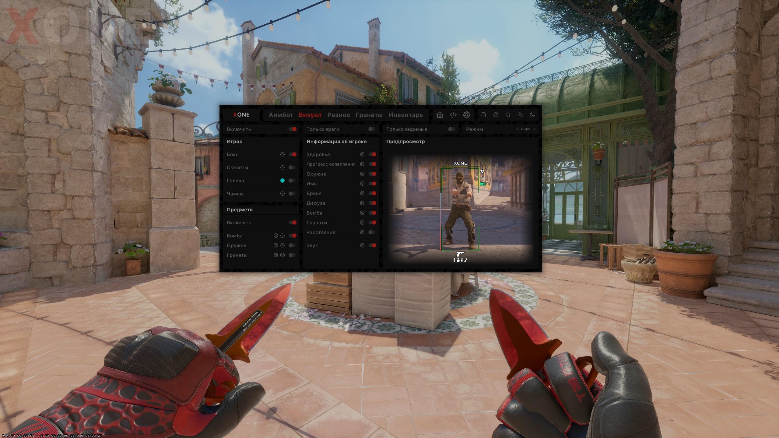 Xone INTERNEL - один из топовых провайдеров приватных читов для различных игр. Данный чит на CS:2, зарекомендовал себя с лучшей стороны, регулярные обновления, хороший функционал, много положительных отзывов и все это по доступной цене!