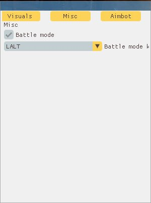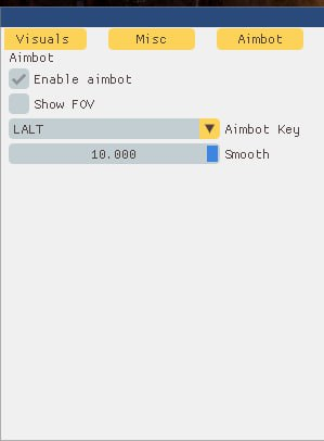 - Aimbot key / Установить клавишу для работы аимбота, выбранную клавишу необходимо зажимать и удерживать