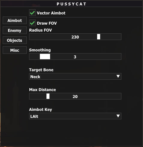 PUSSYCAT - один из топовых провайдеров приватных читов для различных игр. Данный чит на Dark and Darker, зарекомендовал себя с лучшей стороны, регулярные обновления, хороший функционал, много положительных отзывов и все это по доступной цене!