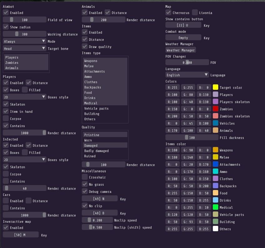 - Items ESP - отображение предметов вокруг вас