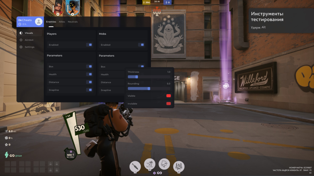 0x - один из топовых провайдеров приватных читов для различных игр. Данный чит на DeadLock, зарекомендовал себя с лучшей стороны, регулярные обновления, хороший функционал, много положительных отзывов и все это по доступной цене!