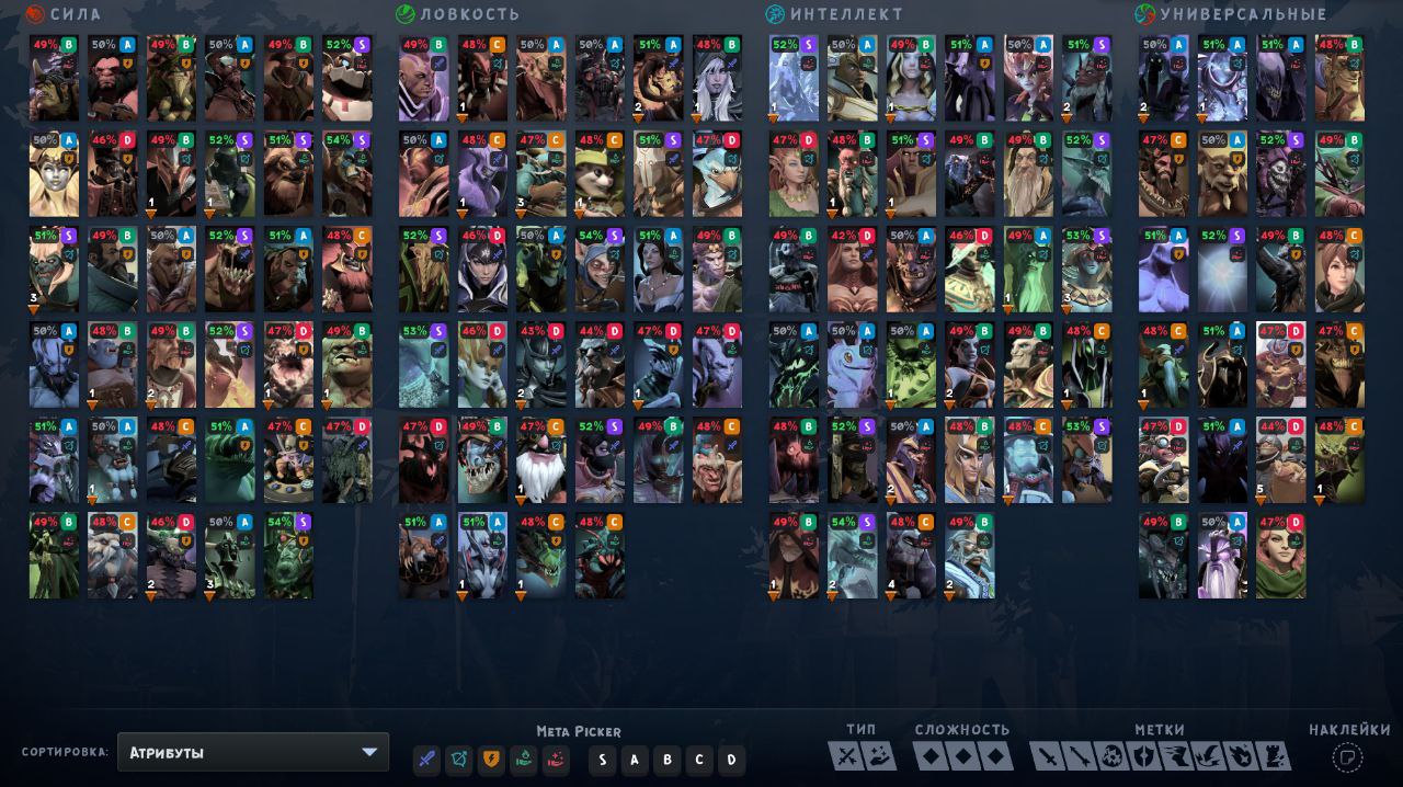 - MetaPicker предоставит вам информацию о самых лучших героях в текущей мете, на основе данных Dota Tracker.