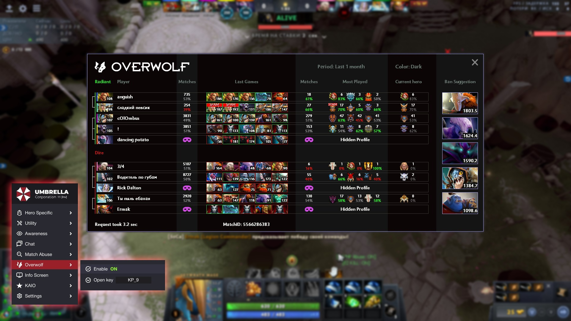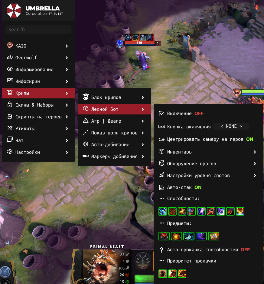 Umbrella Corporation - один из топовых провайдеров приватного ПО для различных игр. Данный софт на DOTA 2, зарекомендовал себя с лучшей стороны, регулярные обновления, хороший функционал, много положительных отзывов и все это по доступной цене!