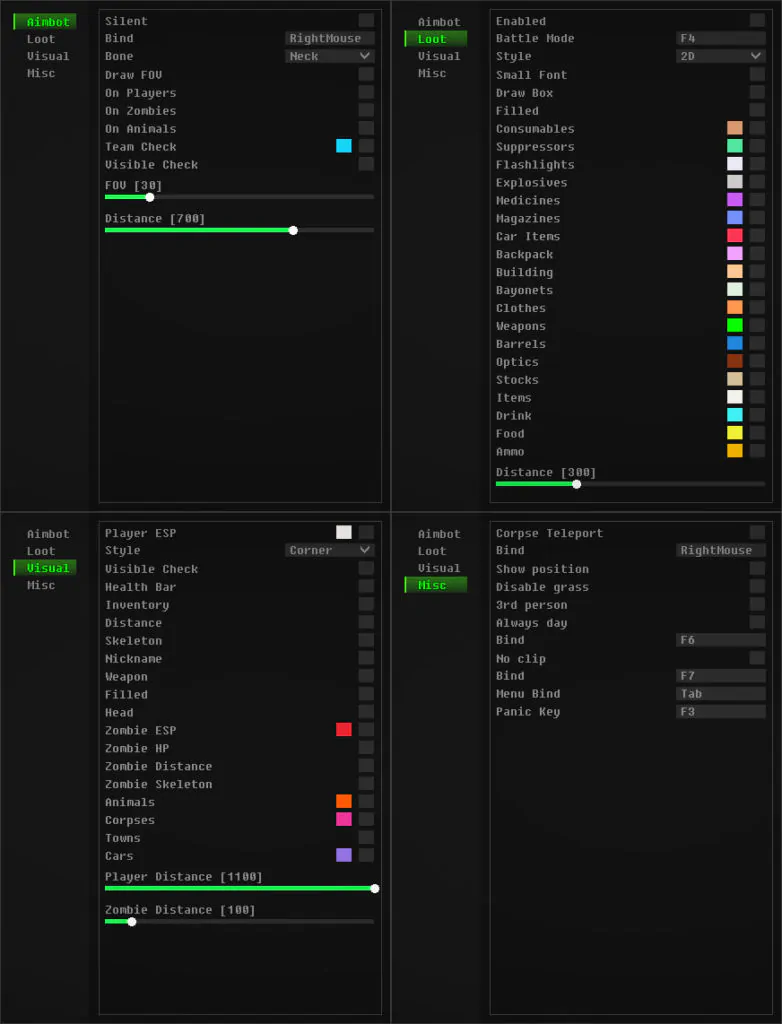 - - возможность включить заливку для 2D, Corner боксов для лута