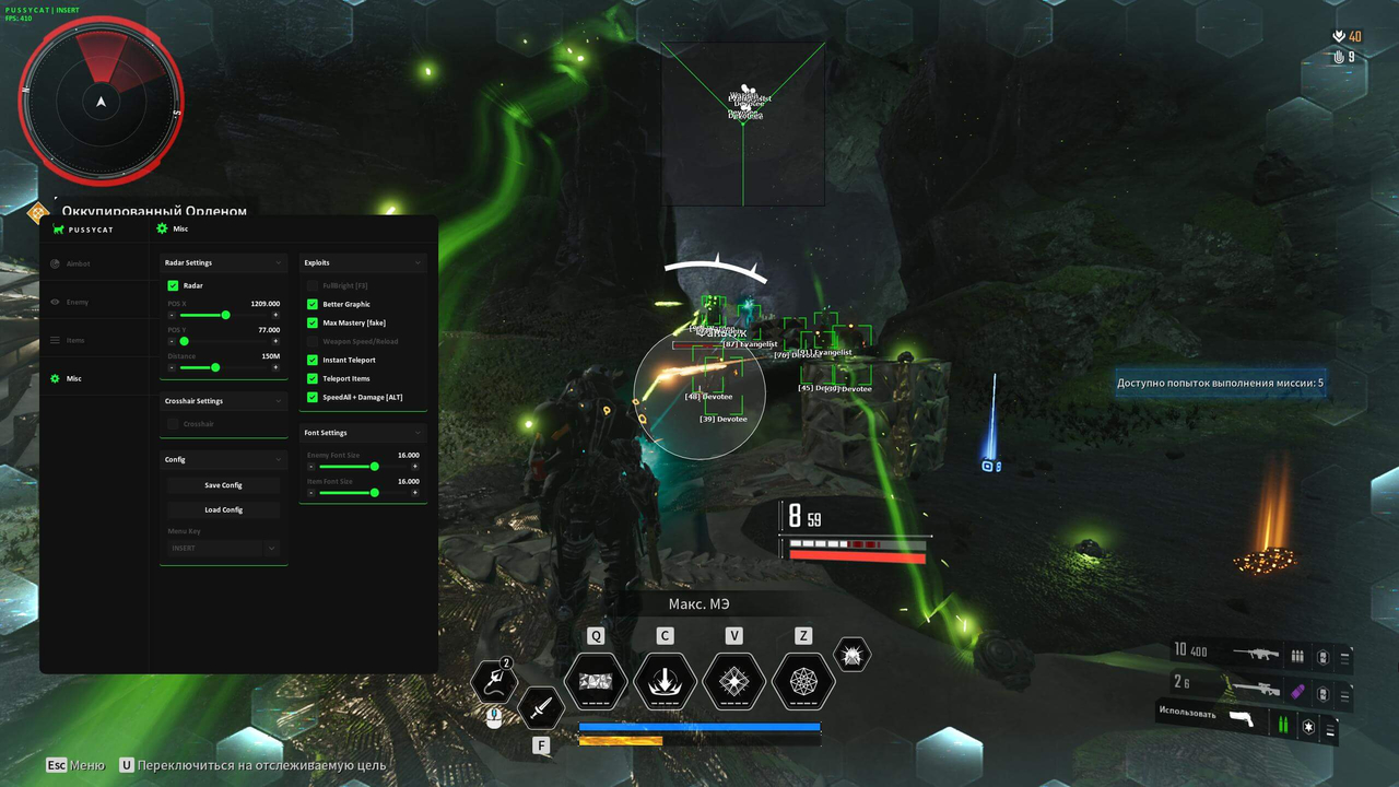 PUSSYCAT - один из топовых провайдеров приватных читов для различных игр. Данный чит на THE FIRST DESCENDANT, зарекомендовал себя с лучшей стороны, регулярные обновления, хороший функционал, много положительных отзывов и все это по доступной цене!