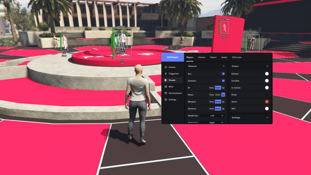 - • Color selection (Self / NPC / Default / Dead / Ghost / In vehicle)