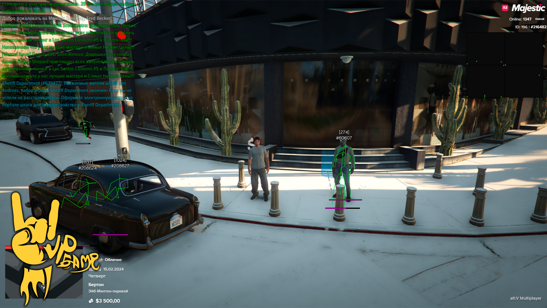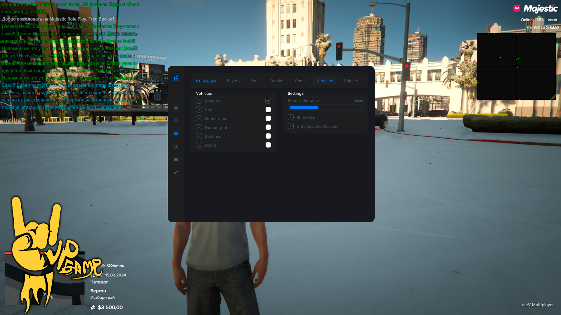 - ESP for: Player, Peds, Admins, Objects, Vehicles and Radar