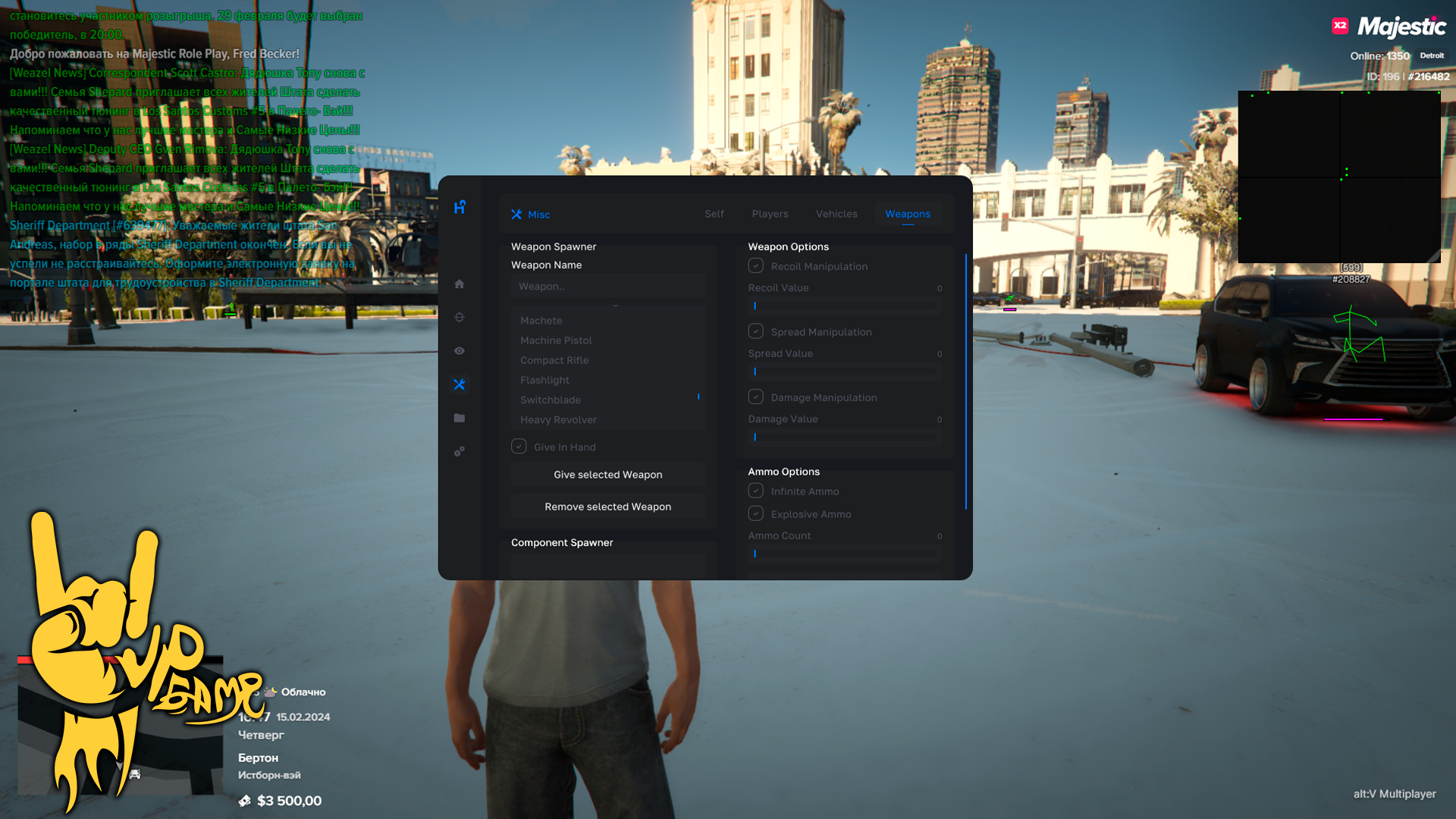 - Misc: Weapon: Give Weapon, Give Weapon attachments, Modify Spread / Recoil, Explosive Bullets and more