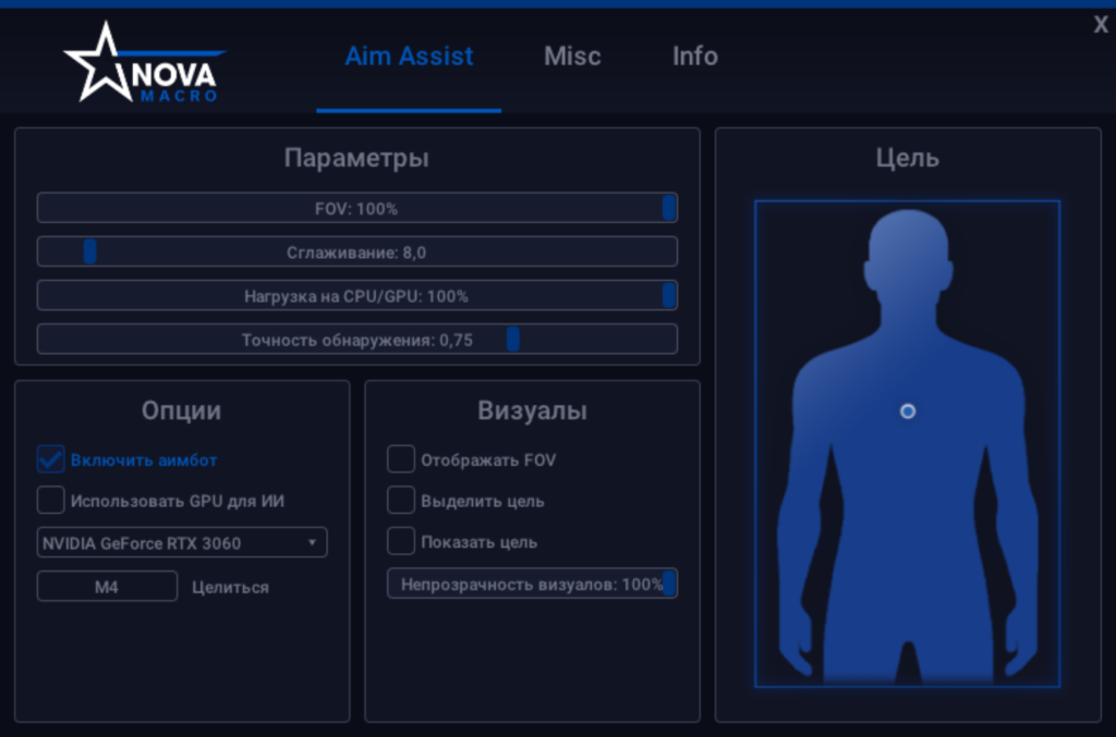 - Полностью внешний ИИ Аим-ассист, основанный на собственной нейронной сети;