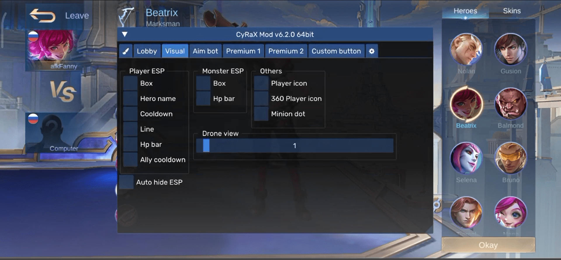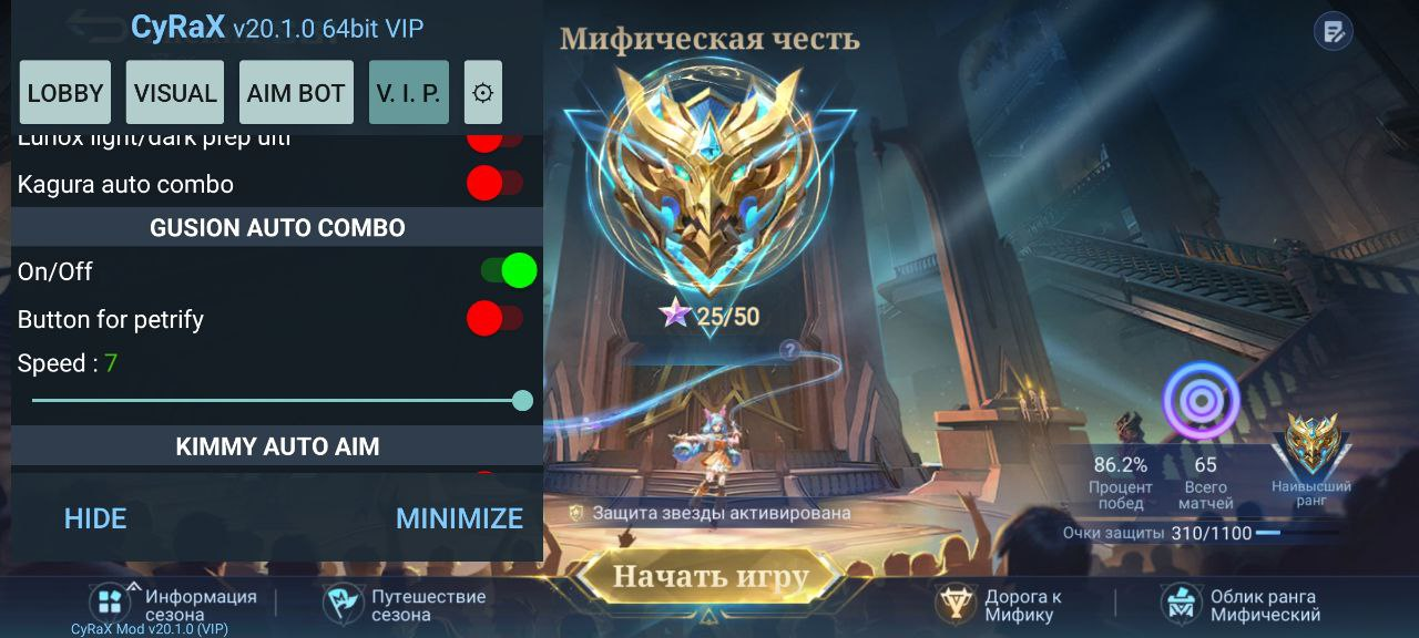 CYREX - один из топовых провайдеров приватного ПО для различных игр. Данный софт на MOBILE LEGENDS, зарекомендовал себя с лучшей стороны, регулярные обновления, хороший функционал, много положительных отзывов и все это по доступной цене!