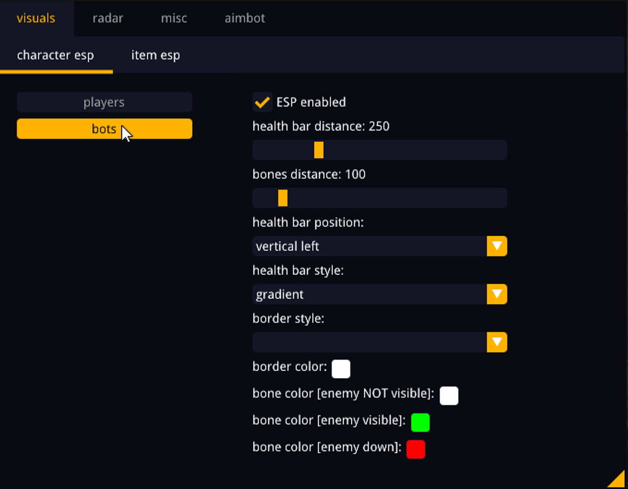 - Подсветка игроков и ботов: