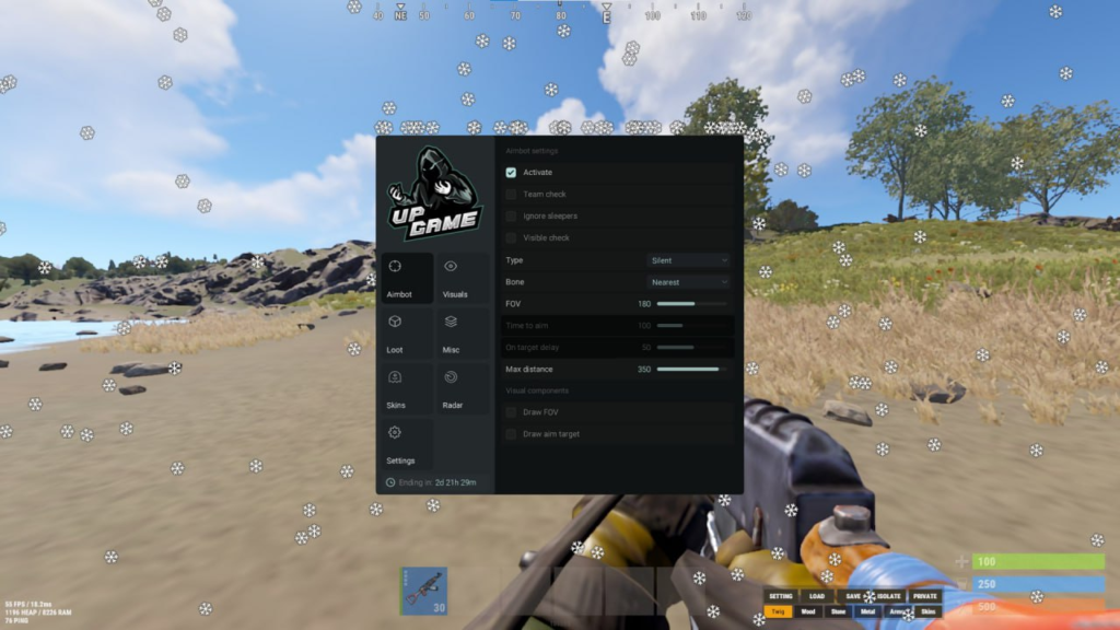 Up-Game pro - один из топовых провайдеров приватных читов для различных игр. Данный чит на Rust, зарекомендовал себя с лучшей стороны, регулярные обновления, хороший функционал, много положительных отзывов и все это по доступной цене!