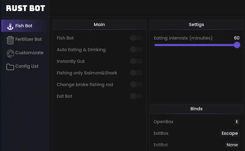 - Rust Fishing Bot - это программа для автоматизации, позволяющая автоматически добывать тонны скрапа, находясь в состоянии полного AFK.