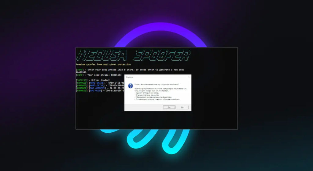 - Medusa Spoofer — это надежное решение для обхода аппаратных банов, которое обеспечивает максимальную защиту и совместимость с ведущими
