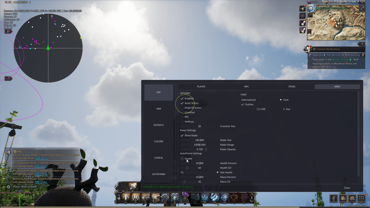 - Draw Farming Location Radius – Подсветка радиуса места фарма