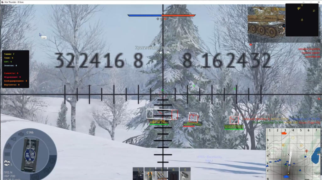 - ESP работает когда противники находятся в засвете (механика игры такова, что появлением модели вражеской техники и выводом ее на экран клиента управляет сервер, который получает от клиента данные с камеры