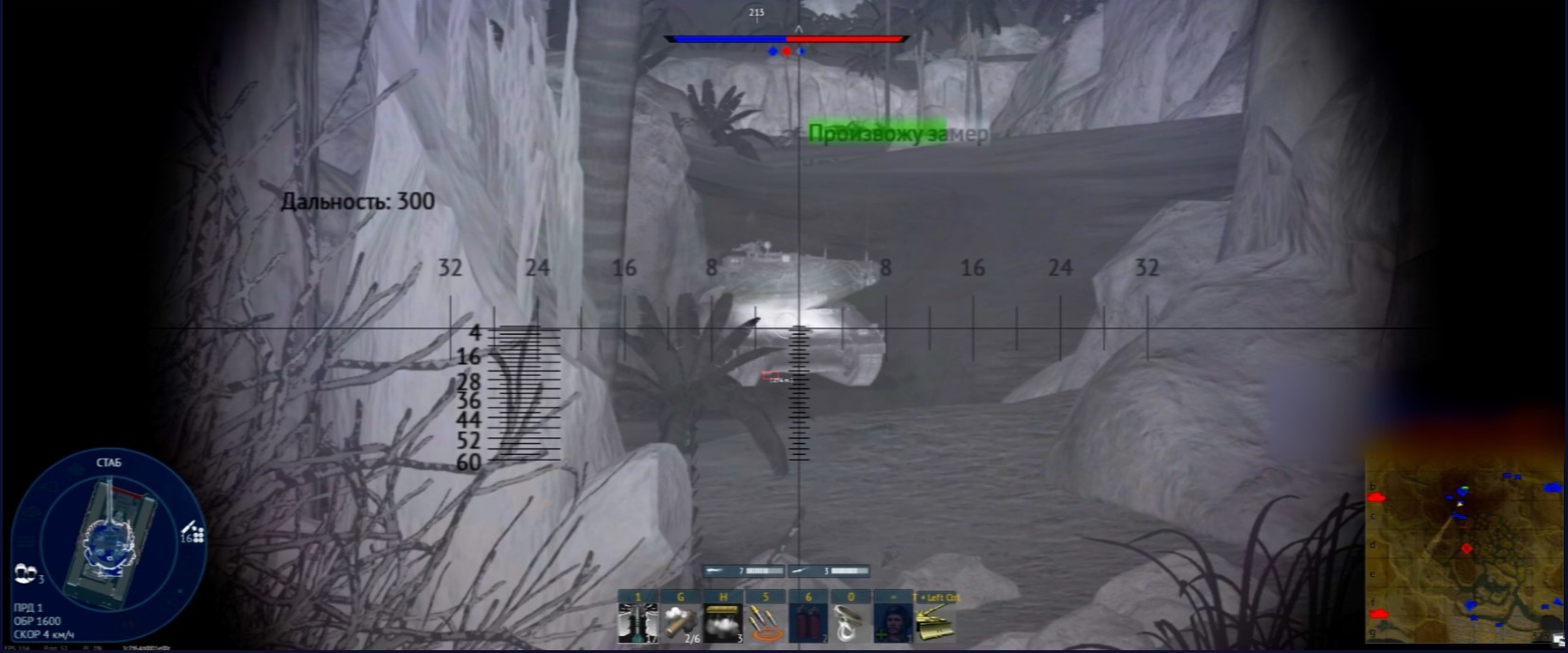 - Отображение дистанции до врага